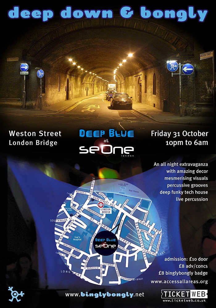 "deep down & bongly' first happened at Deep Blue, London Bridge on Friday the 31st October 2003...